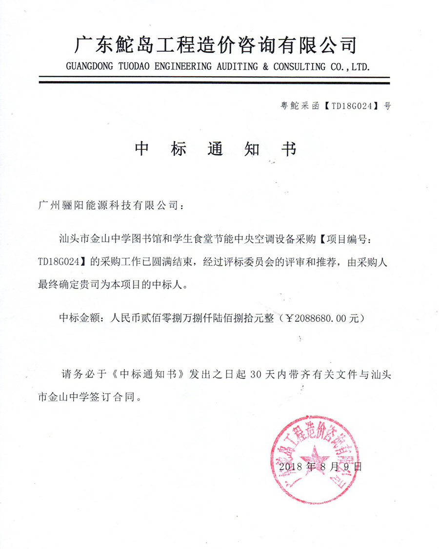 汕頭市金山中學圖書館和學生食堂節能中央空調設備采購